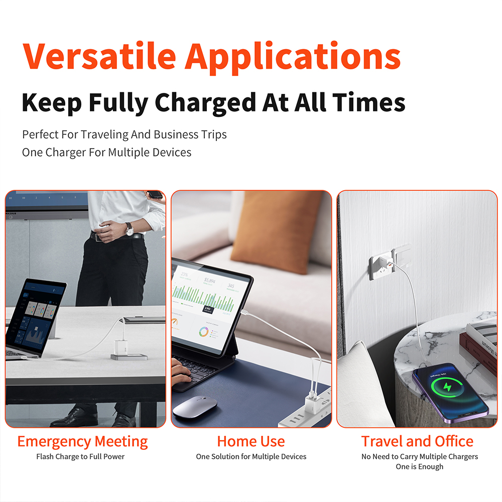 Versatile Applications: Whether at home, the office, or during travel, the 30W PD fast charger meets your charging needs, keeping your devices always charged.
